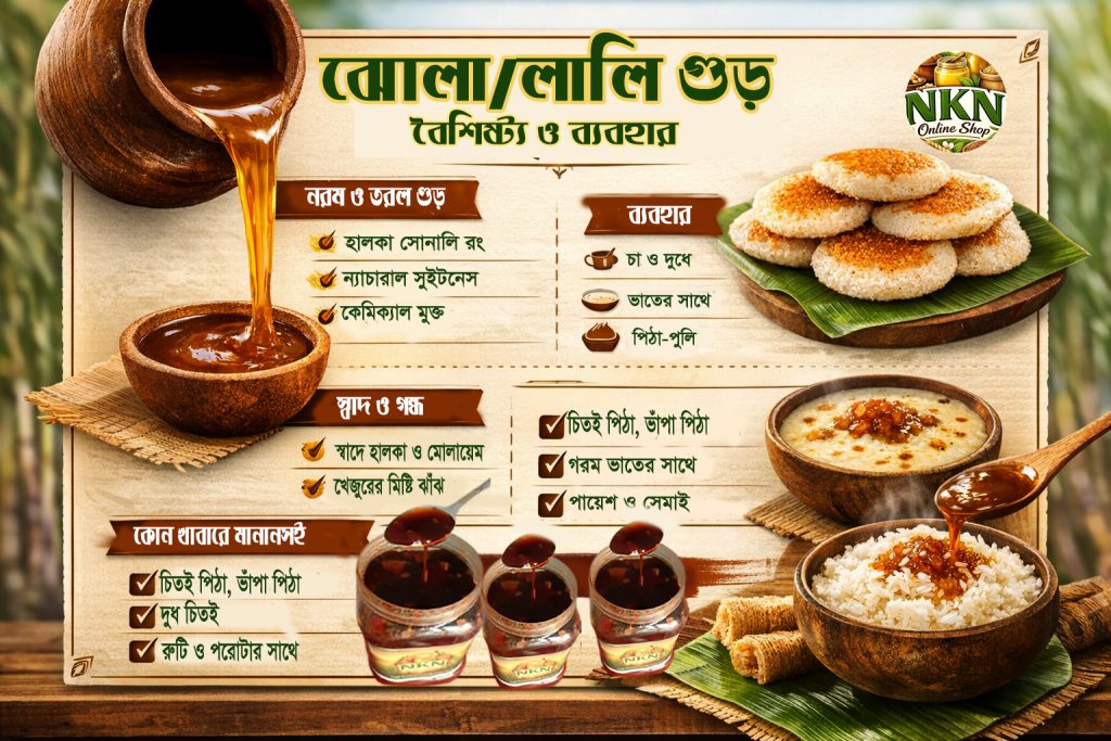 • যারা চিনি বা শক্ত গুড় বেশি মিষ্টি মনে করেন, তাদের জন্য ঝোলা গুড় একদম পারফেক্ট।